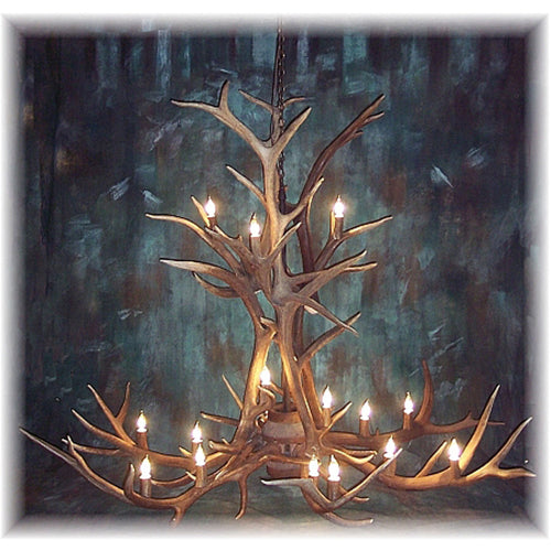 12 Antler, 18 Light Large Elk Antler Cascading Chandelier