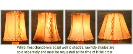 While most chandeliers adapt well to shades, rawhide shades are not included and are not guaranteed to fit unless noted on the initial order.
