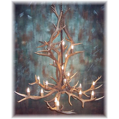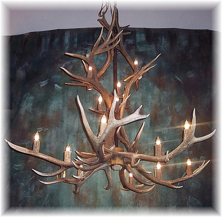 12 Antler, 18 Light Medium Elk Antler Cascading Chandelier