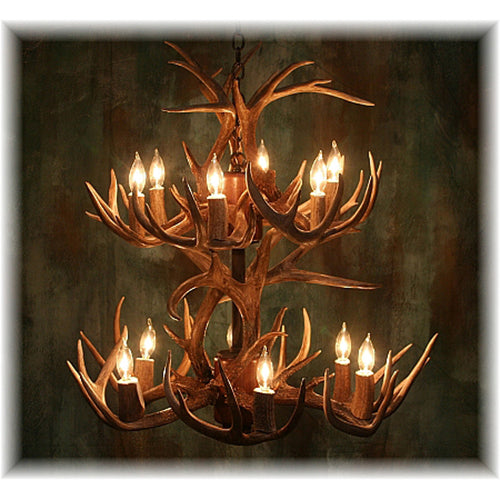 18 Antler, 12 Light Small Two Tier Whitetail Antler Chandelier