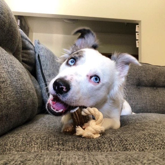 Large Elk Antler Split Rope Toy - All Natural, Grade A, Premium Antler Dog Treats, Organic Dog Chews, Naturally Shed Antlers from USA