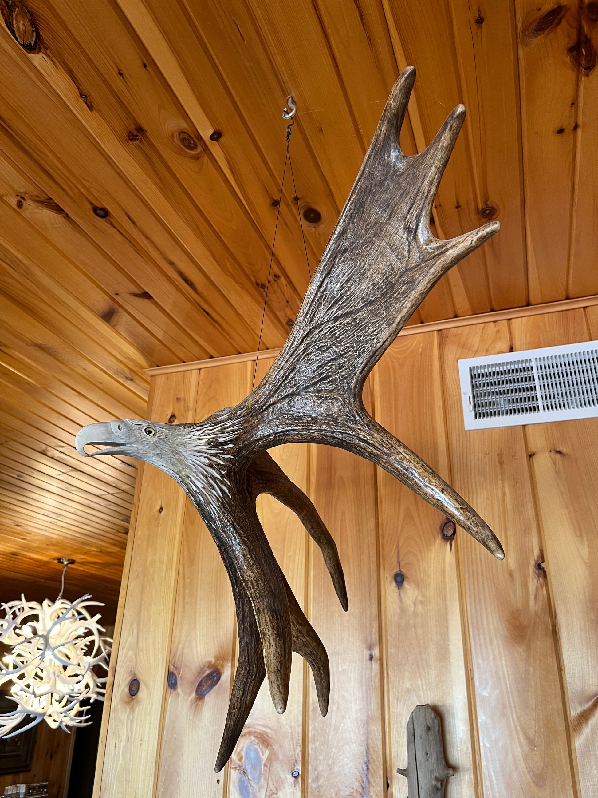 Moose Antler hanging eagle carving