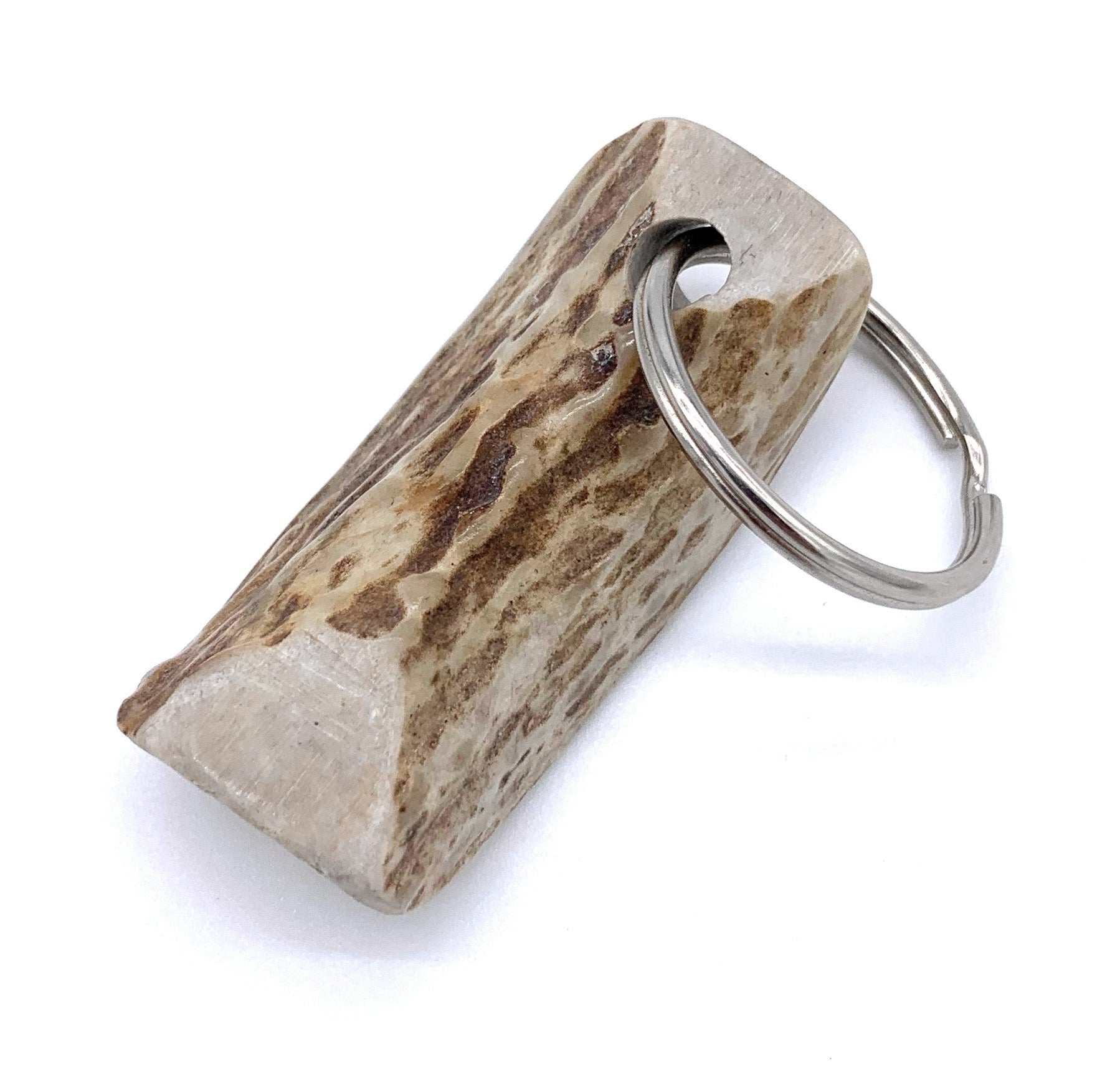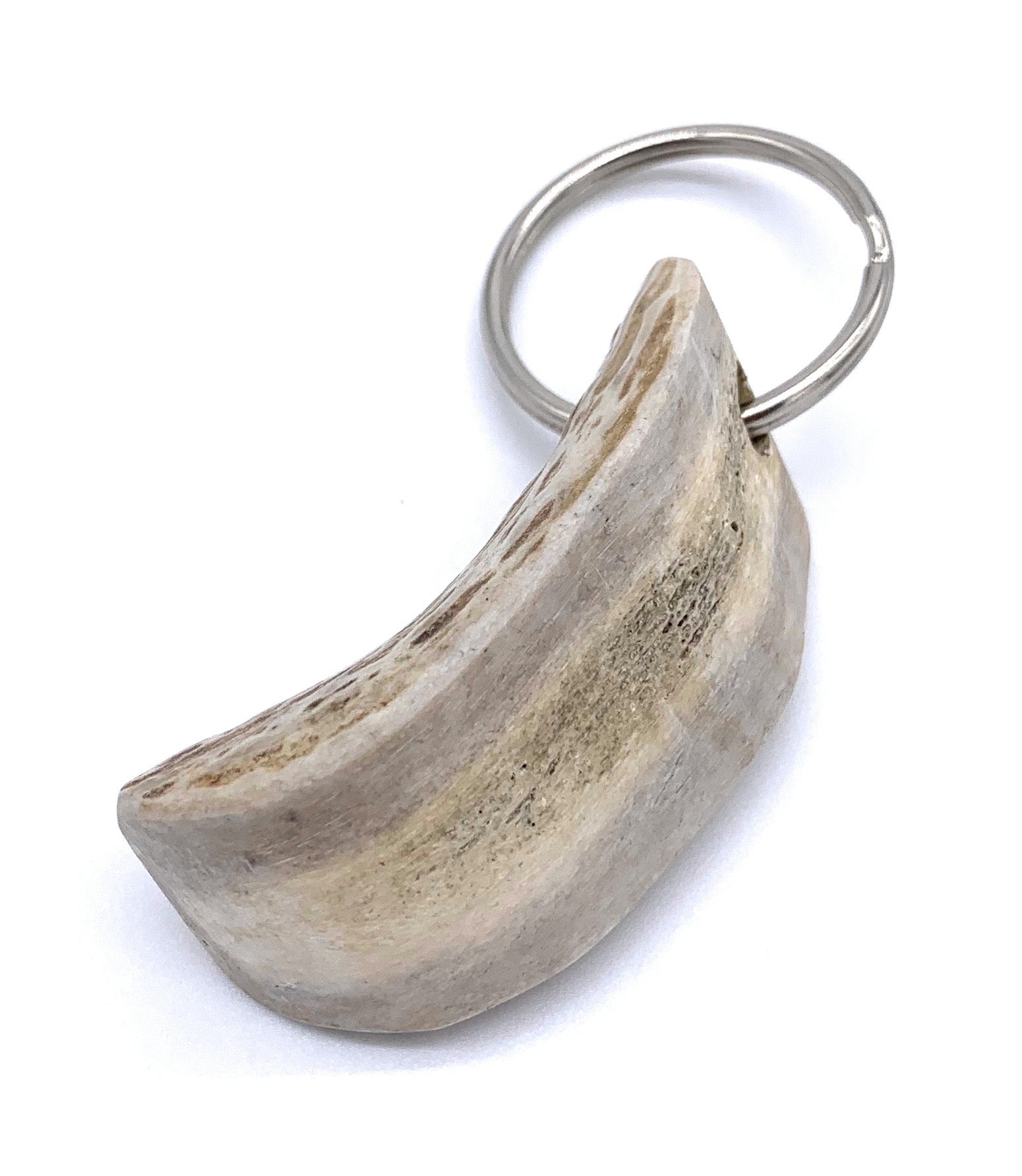 Polished Antler piece keychains are crafted from Grade A natural shed antlers. Pieces measure 1-2" long.