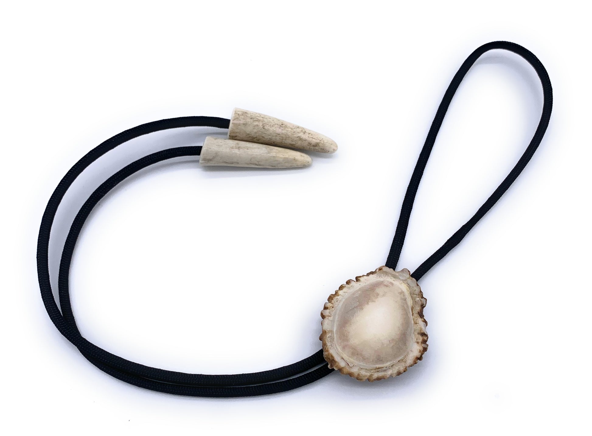Polished Burr Bolo with Antler Tips. Deer burr measures approximately 1.5" - 2" in diameter with 38" of leather.