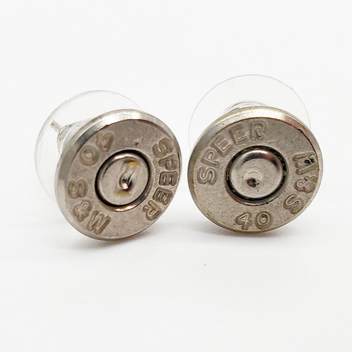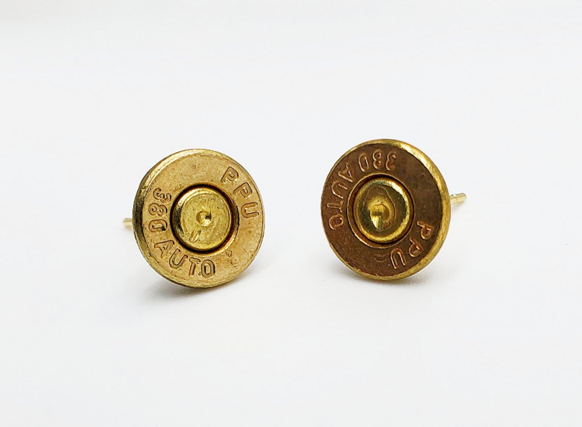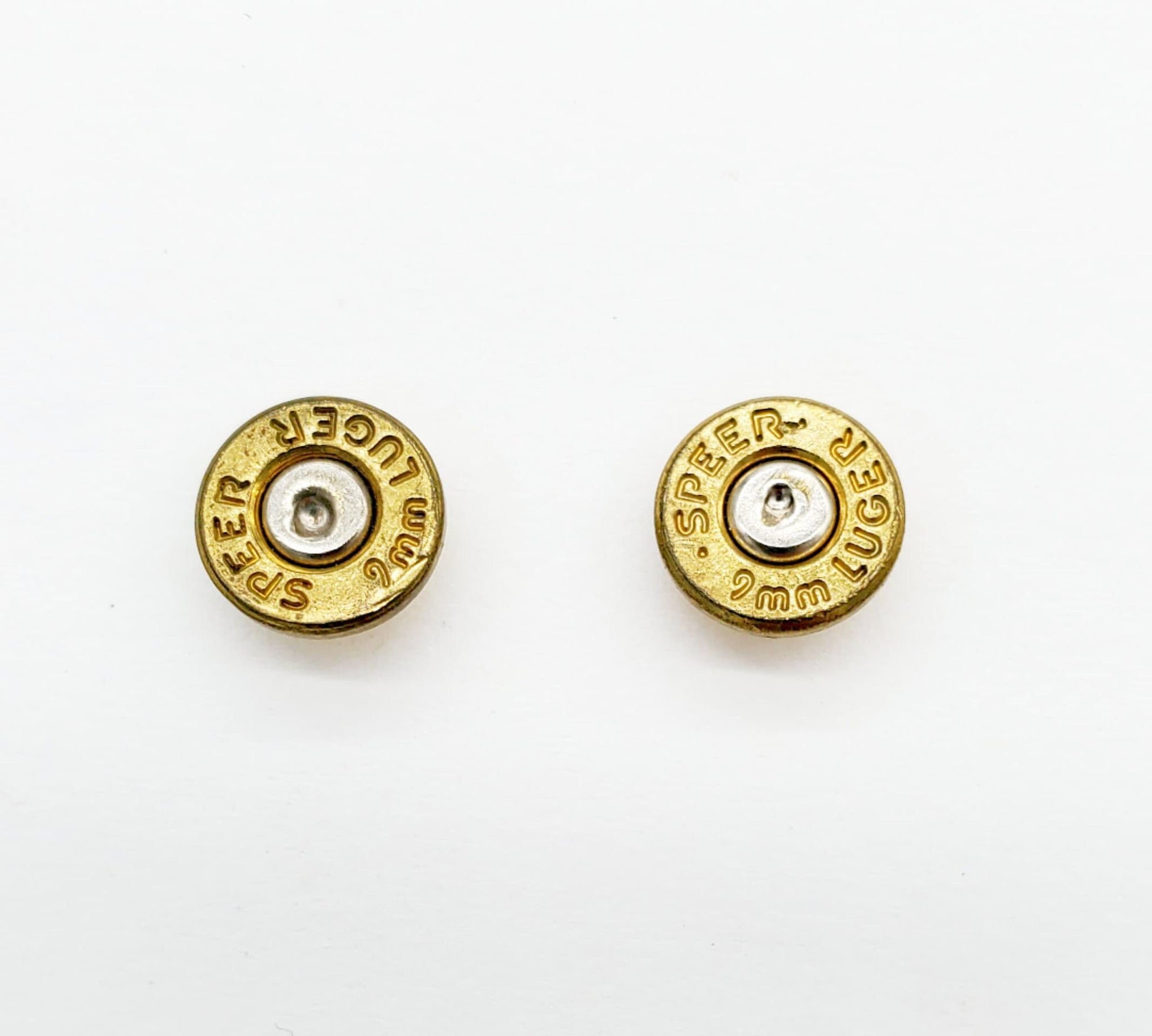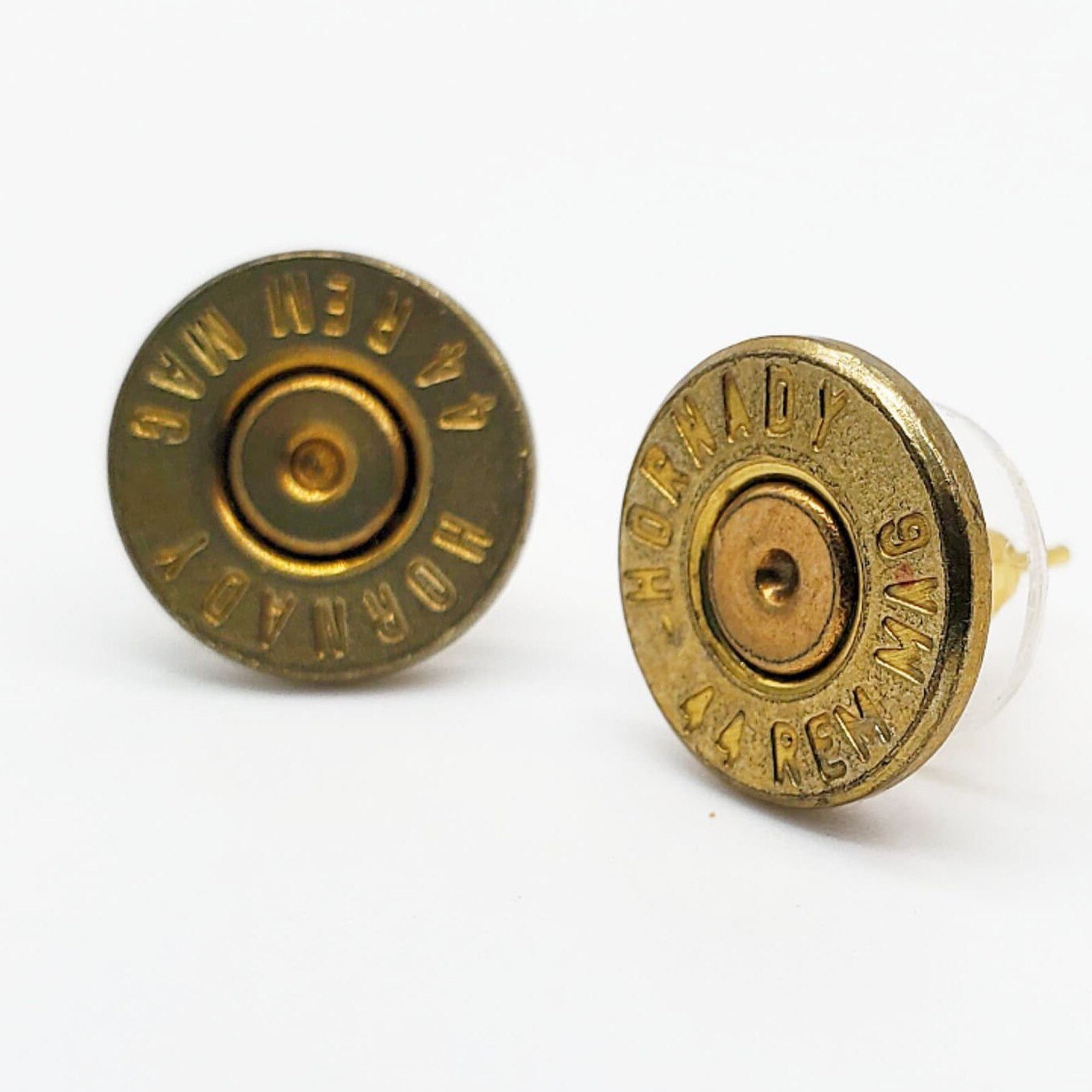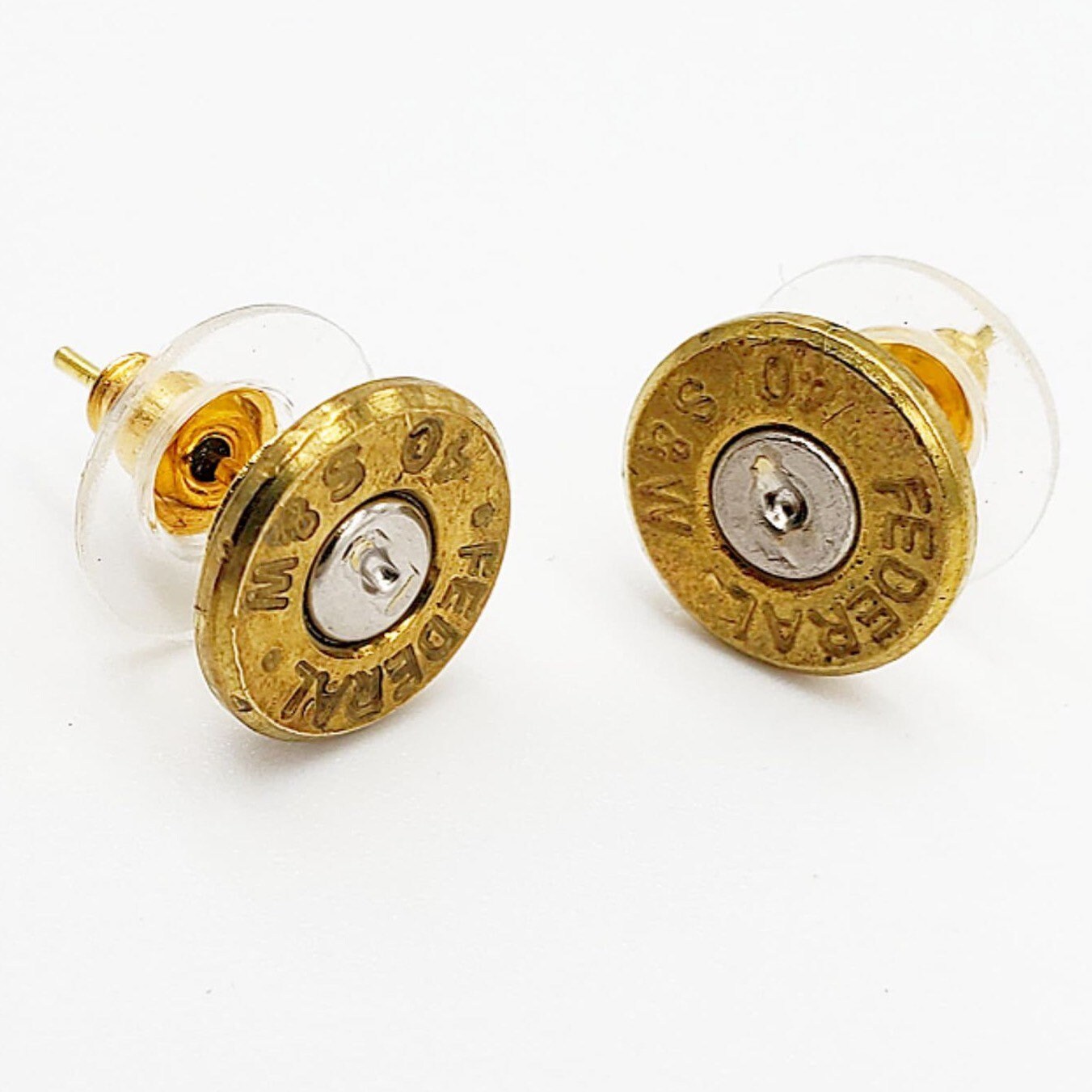 These spent brass stud earrings are a great way to show your love of shooting sports. They are made using real bullet casings and come in a variety of calibers.